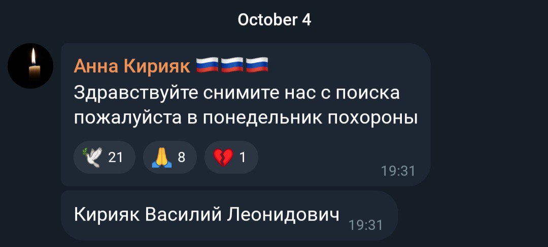 Дата сообщения о гибели: