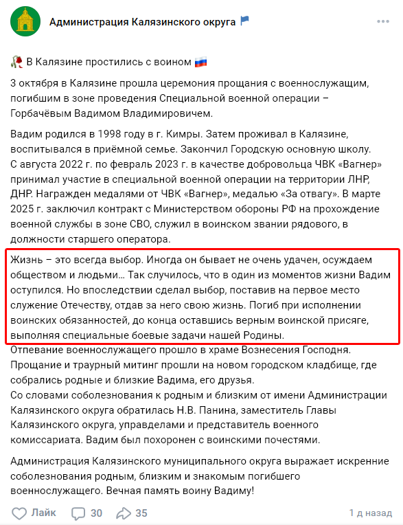 Скриншот сообщения о гибели
