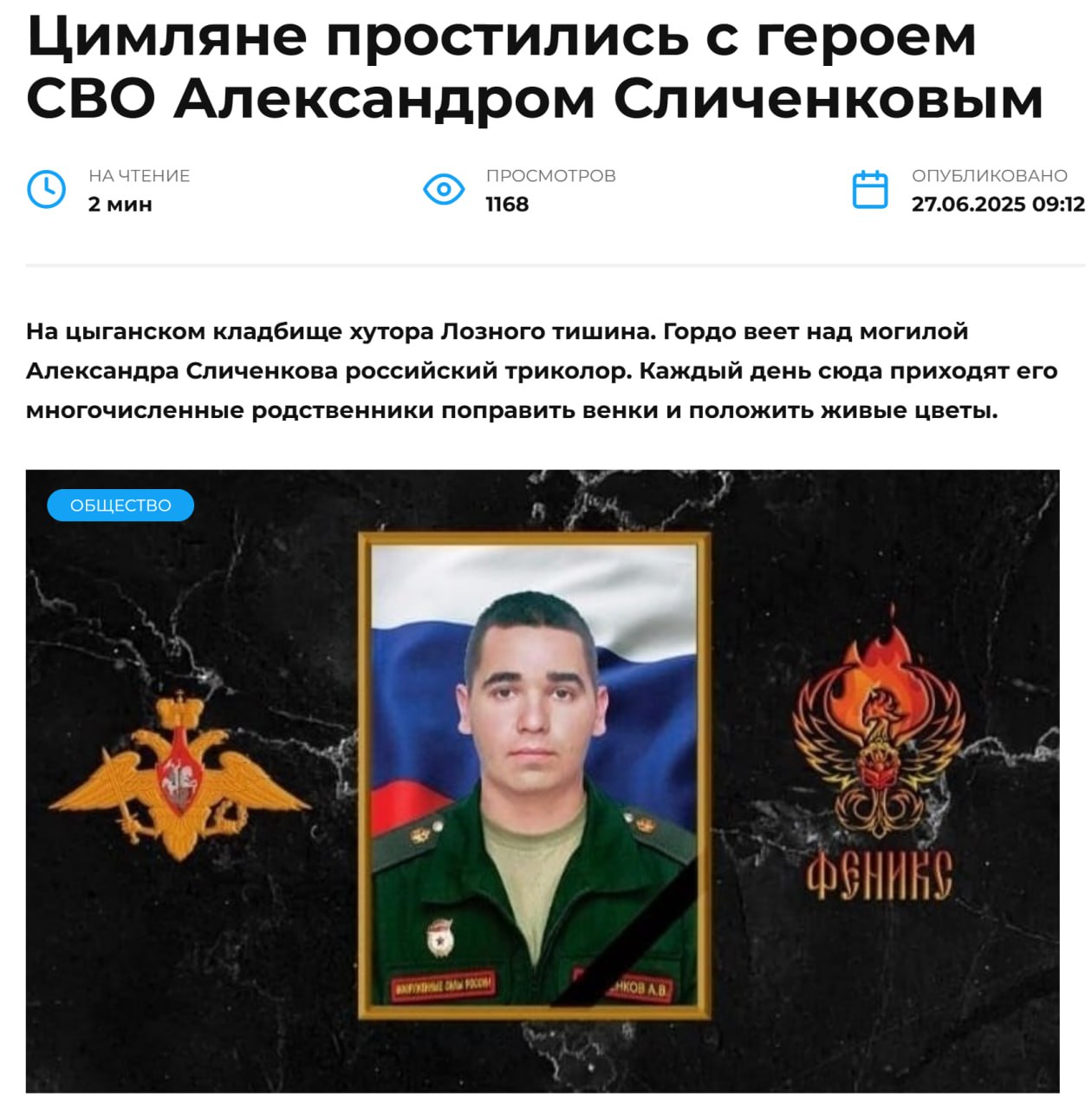 Дата сообщения о гибели: