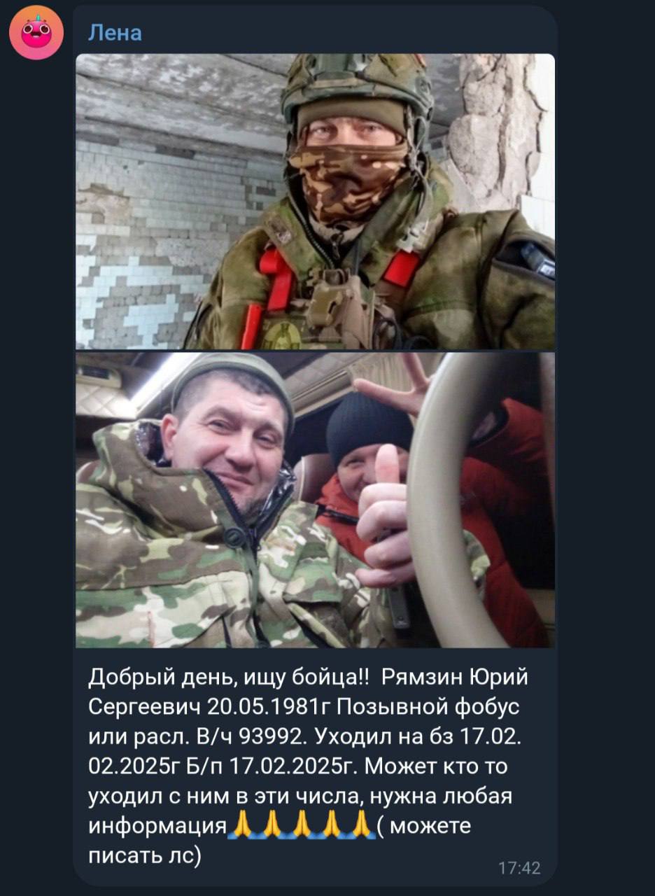 Считался без вести пропавшим с 17.02.2025 года.