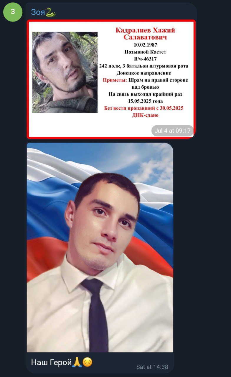 Дата сообщения о гибели:
