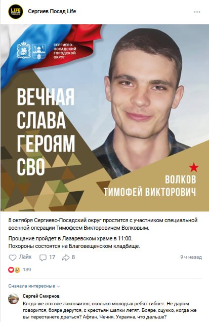 Скриншот сообщения о гибели