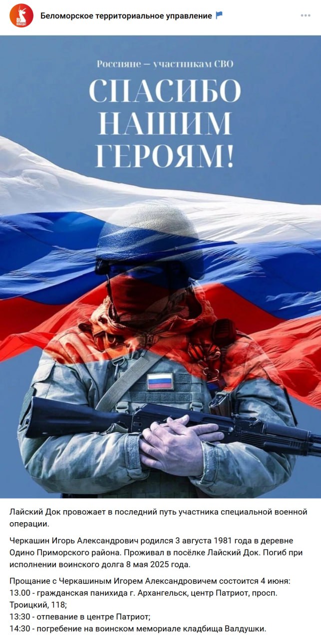 Дата сообщения о гибели: