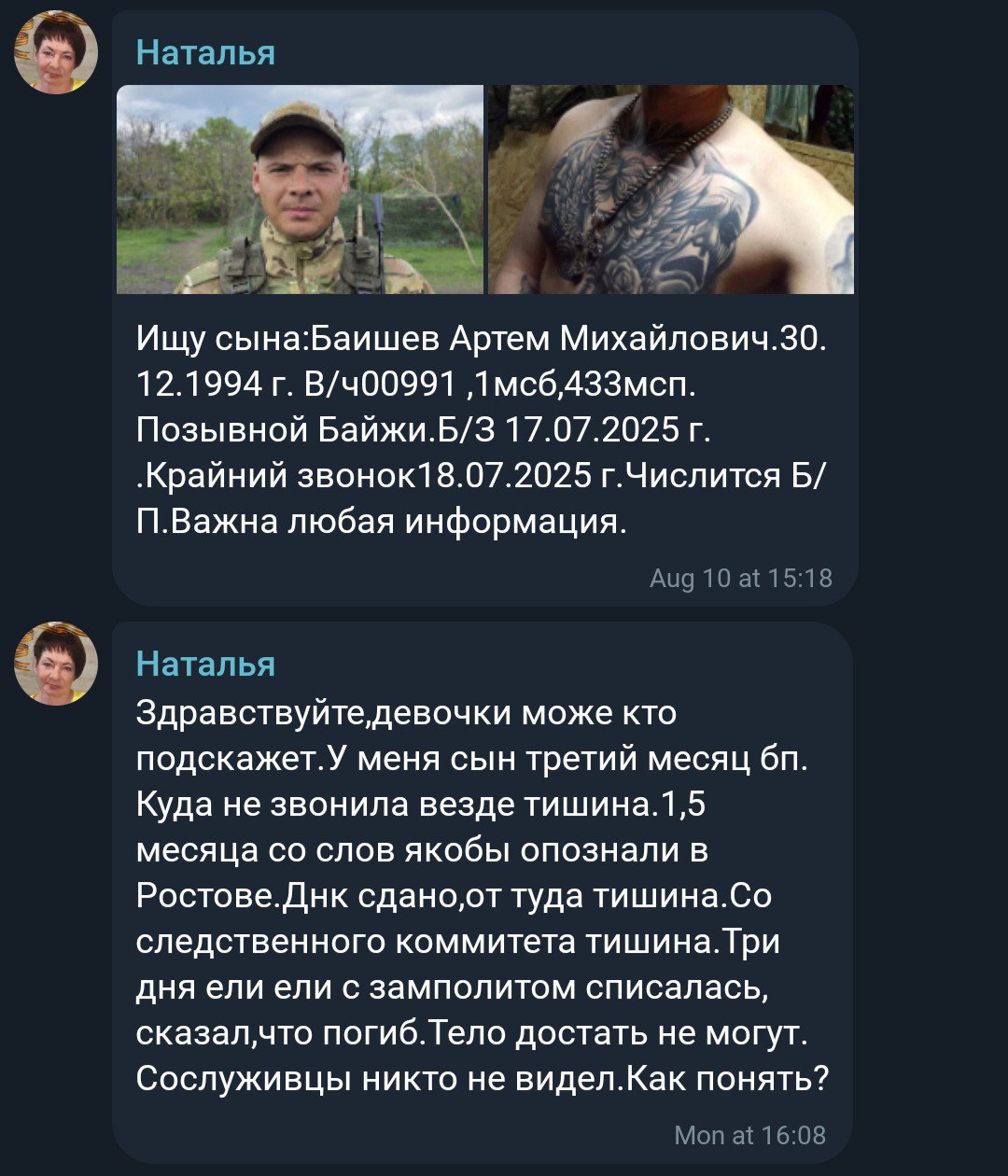 Дата сообщения о гибели: