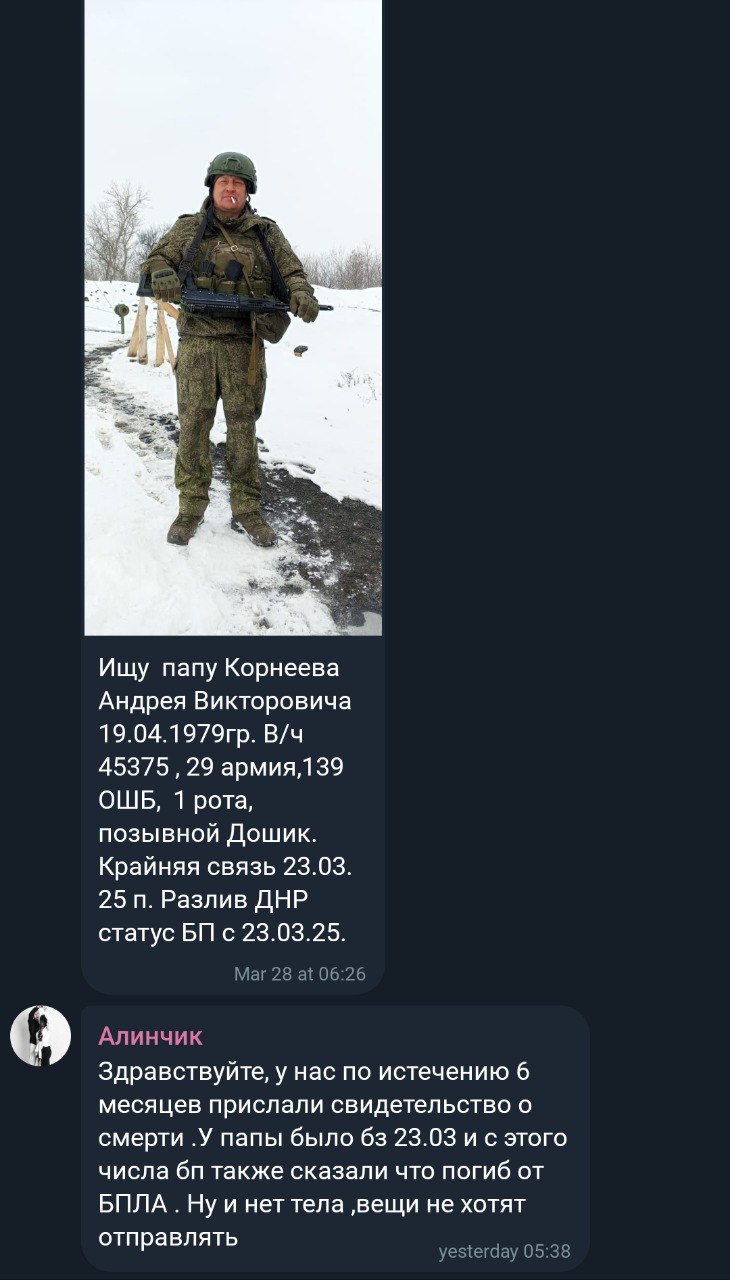 Скриншот сообщения о гибели