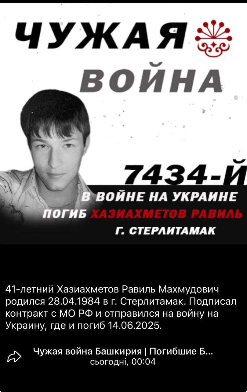 Скриншот сообщения о гибели