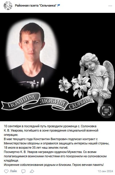 Скриншот сообщения о гибели