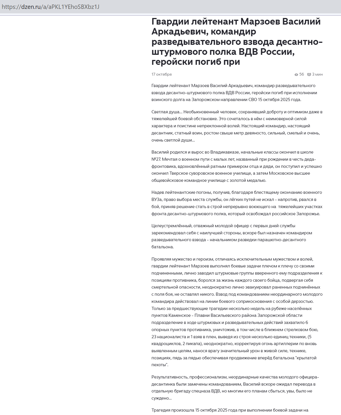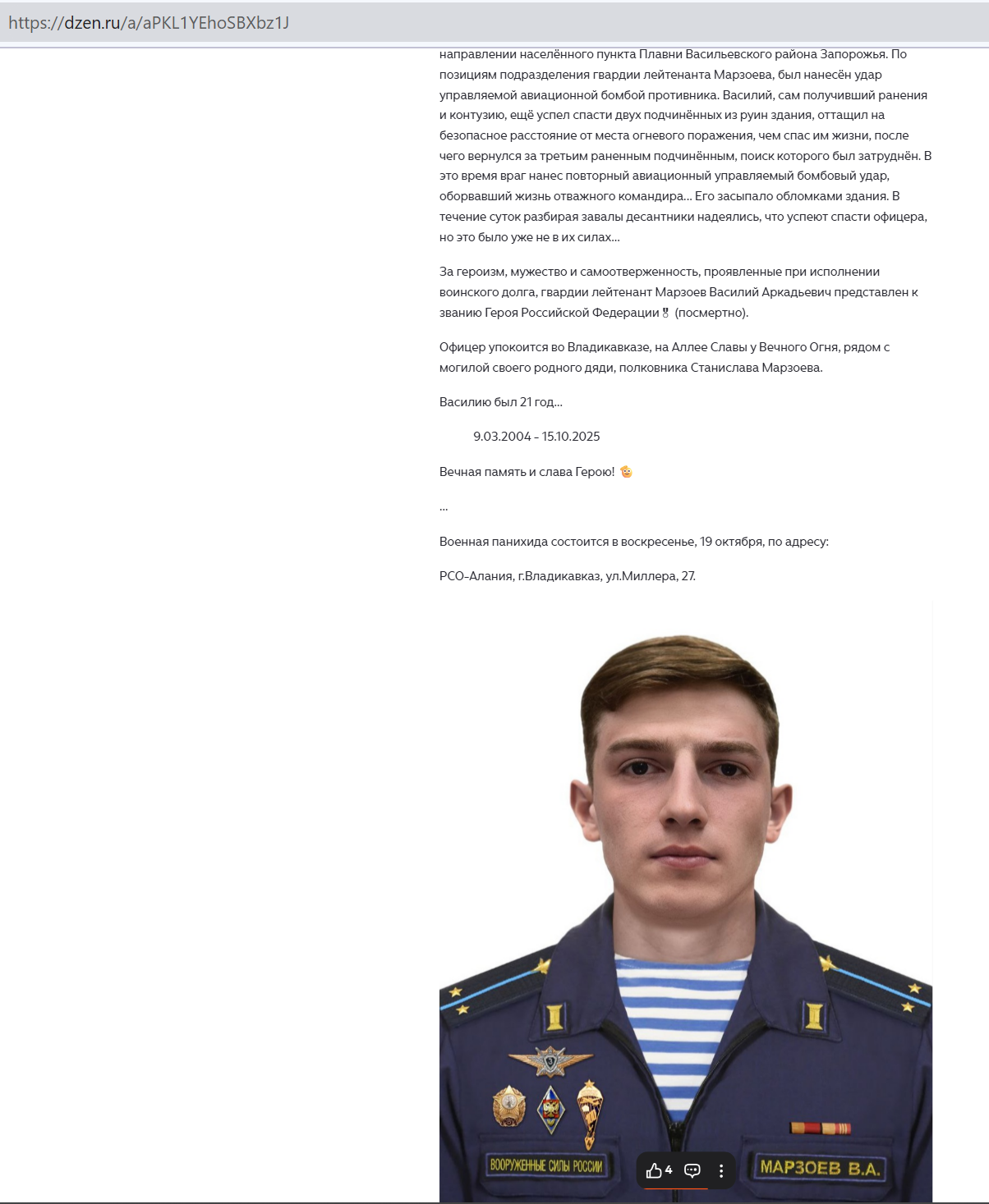 Скриншот сообщения о гибели