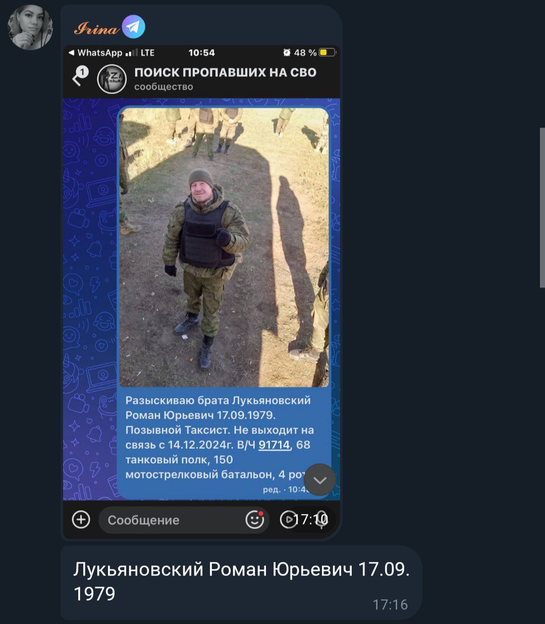 Дата сообщения о гибели: