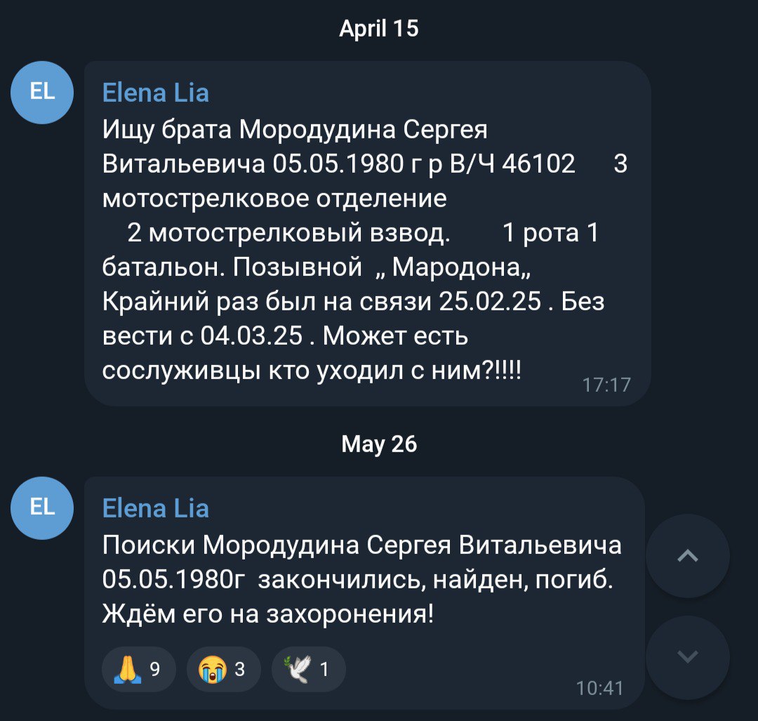 Дата сообщения о гибели: