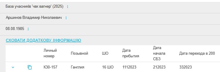 Подробные данные по данному погибшему