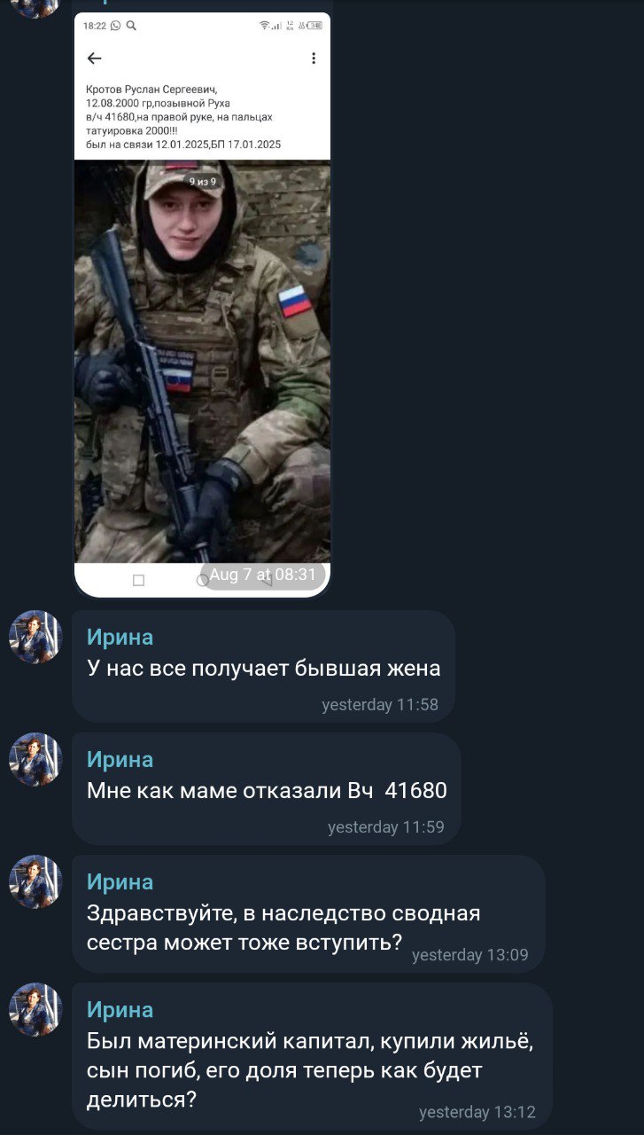 Скриншот сообщения о гибели