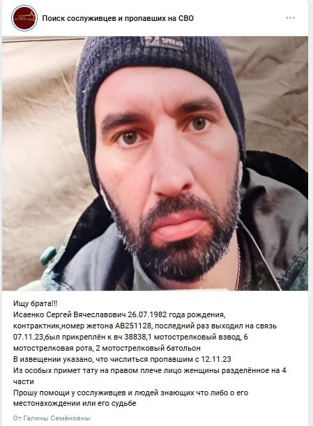Дата сообщения о гибели: