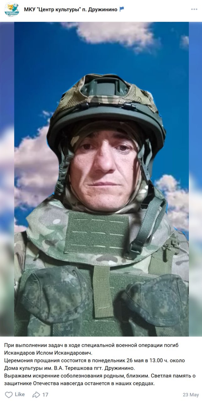 Дата сообщения о гибели: