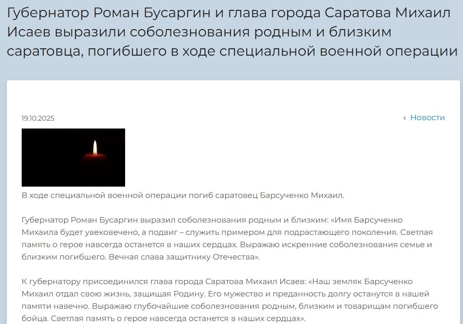 Дата сообщения о гибели: 21.10.2025