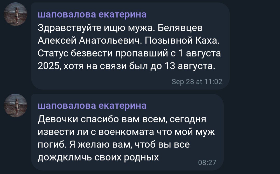 Дата сообщения о гибели:
