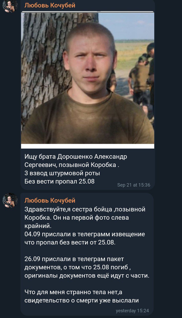 Скриншот сообщения о гибели