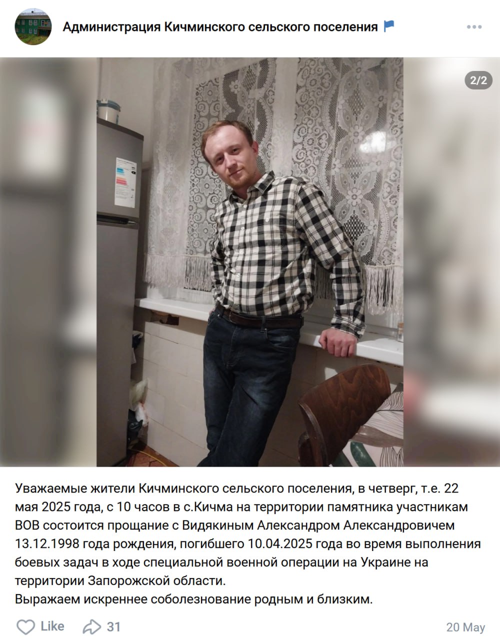 Дата сообщения о гибели:
