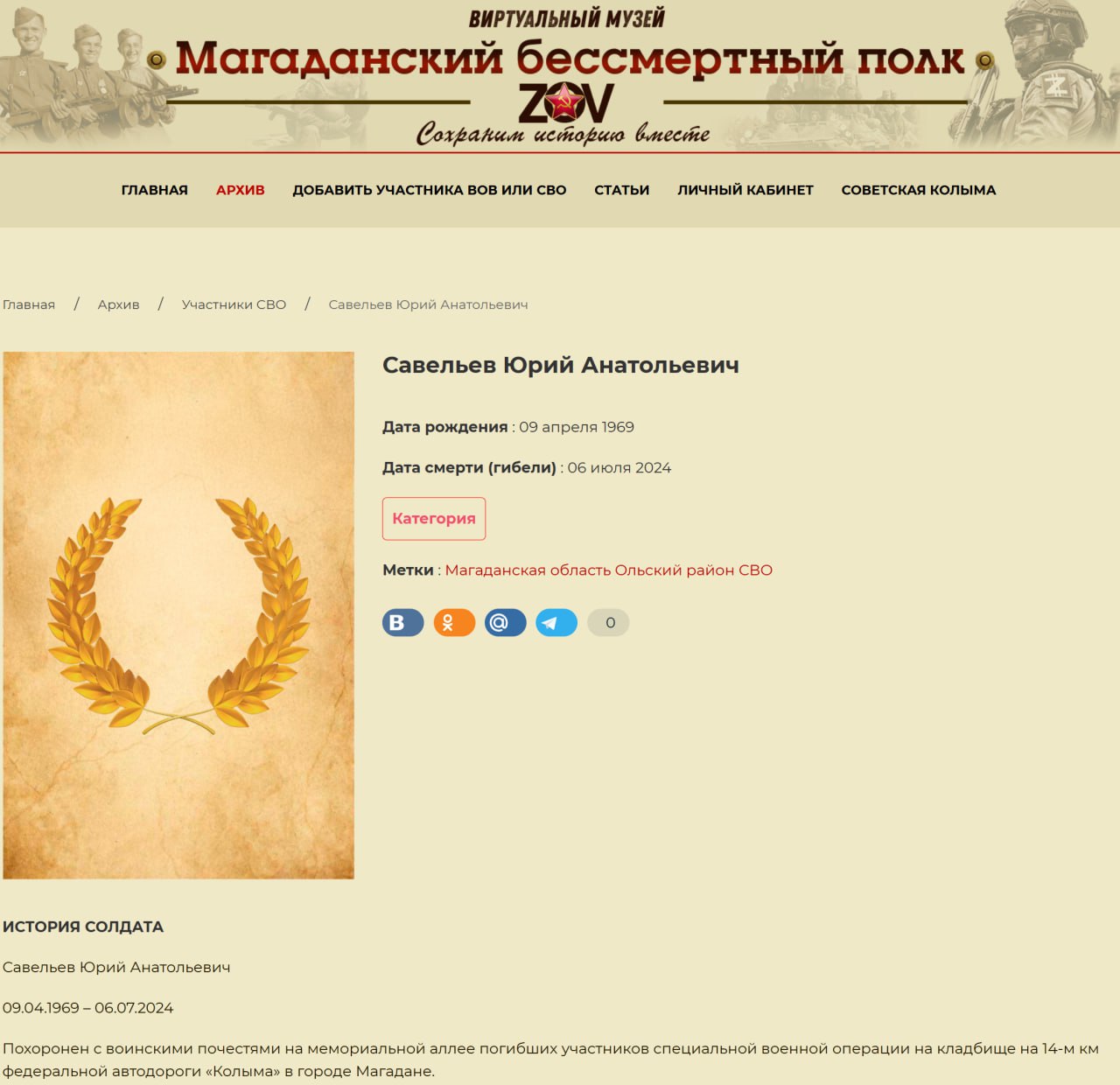 Дата сообщения о гибели: