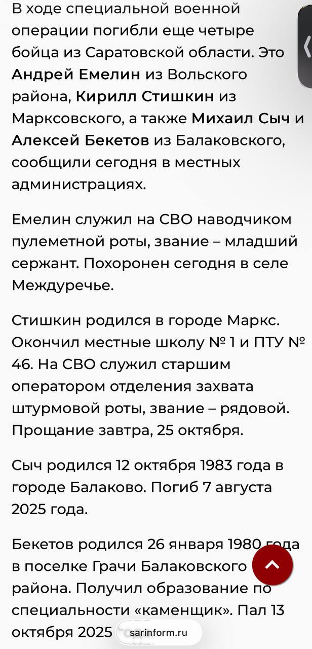 Дата сообщения о гибели: 26.10.2025