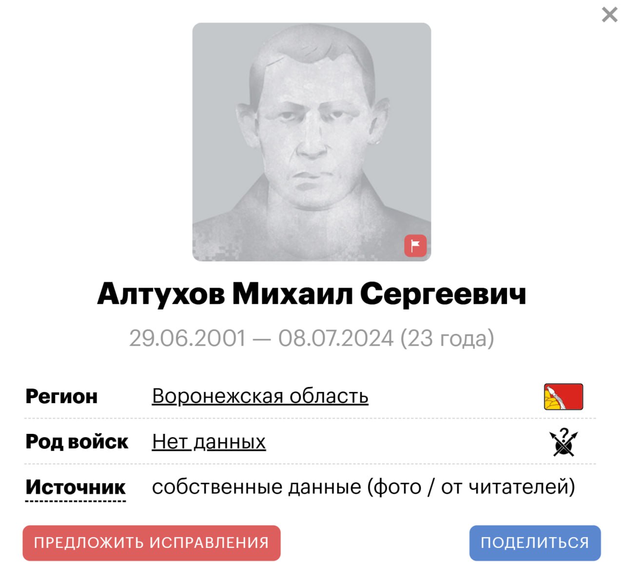 Подробные данные по данному погибшему