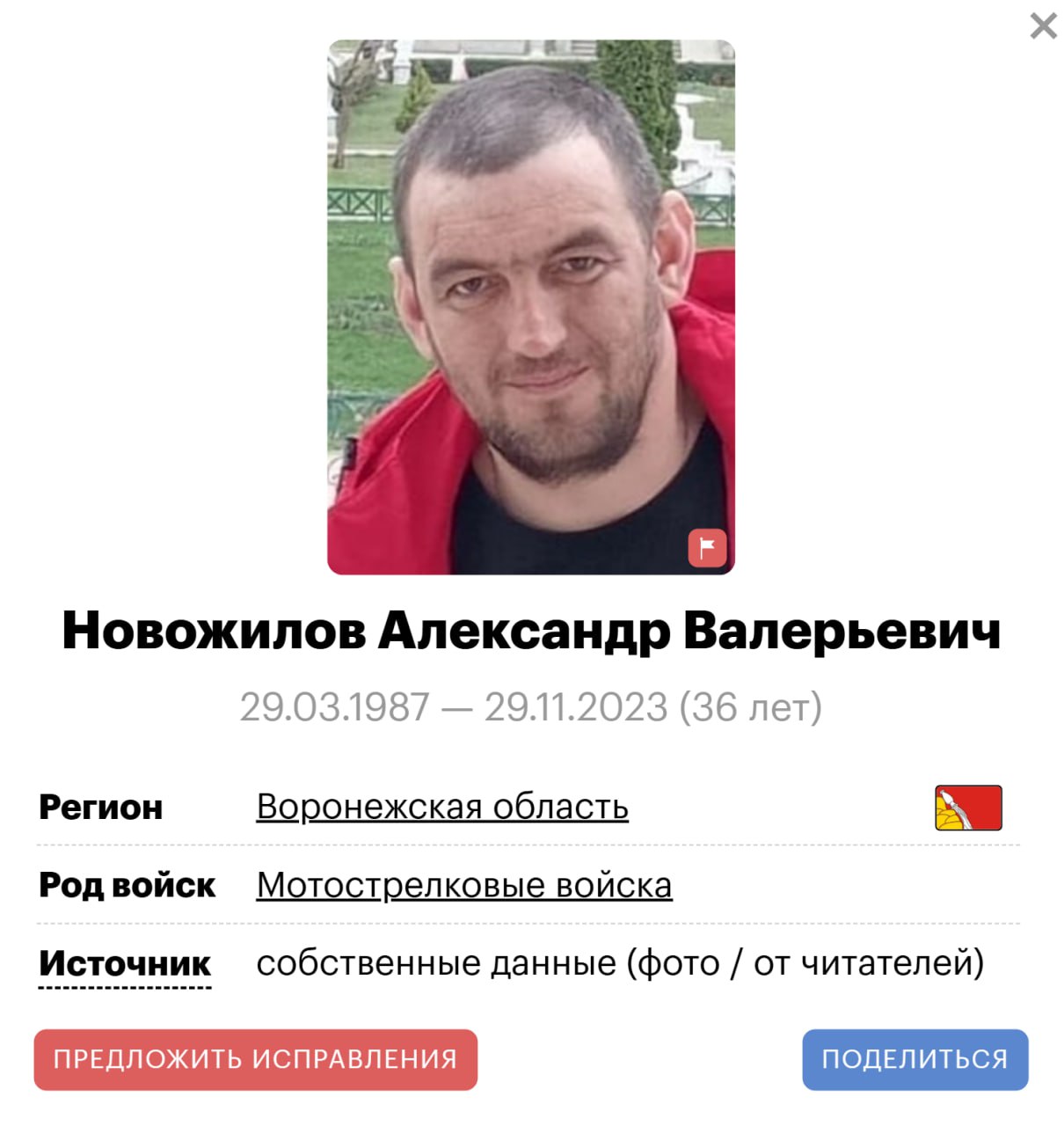 Подробные данные по данному погибшему