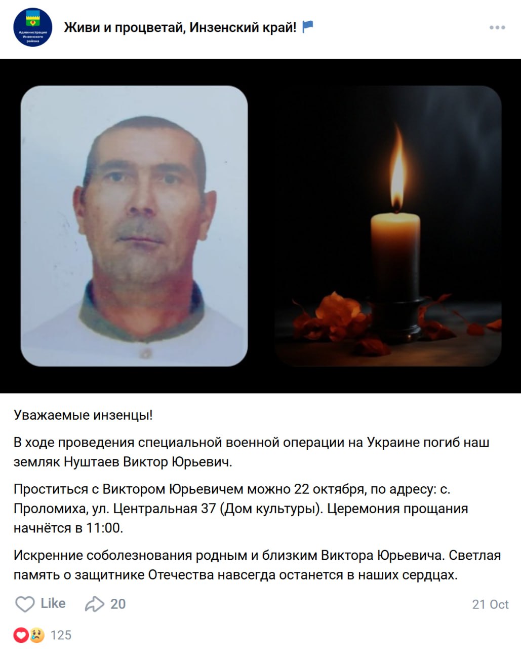 Дата сообщения о гибели: