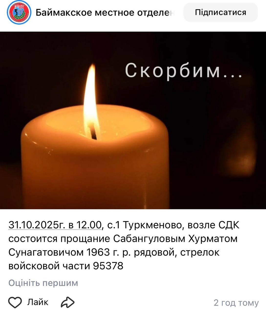 Дата сообщения о гибели: