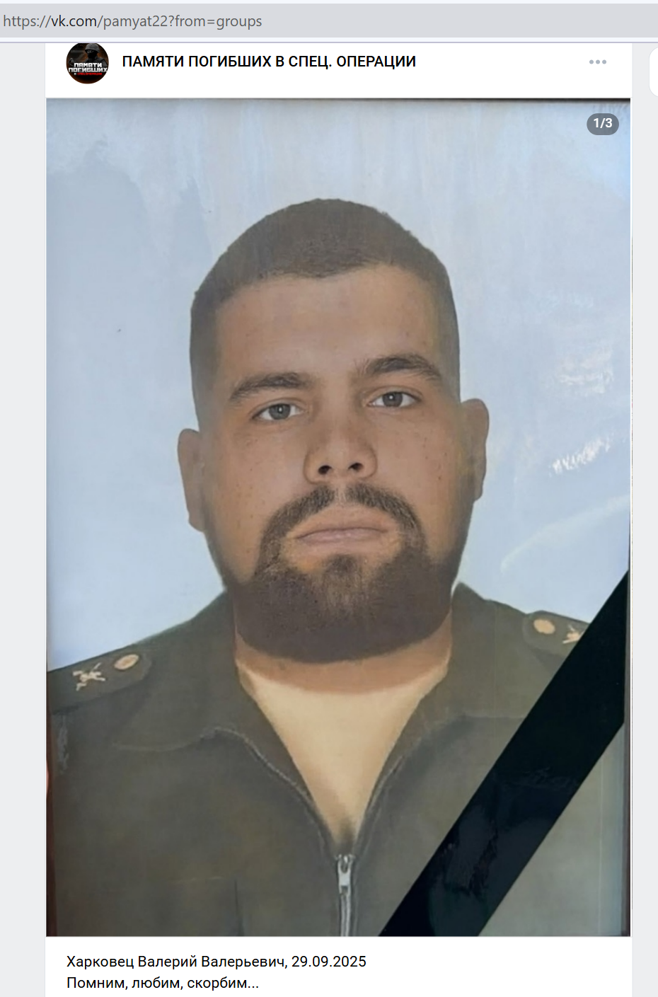 Скриншот сообщения о гибели
