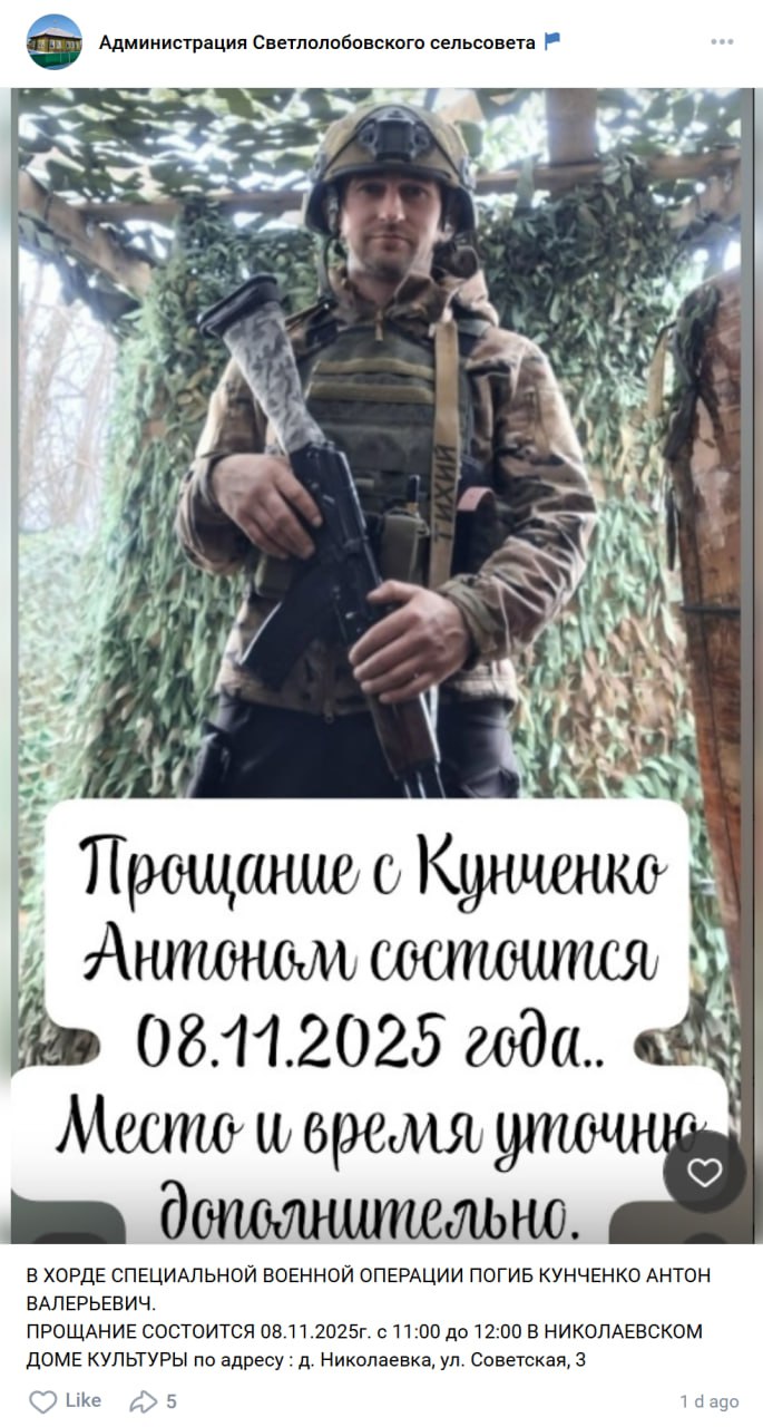 Дата сообщения о гибели: