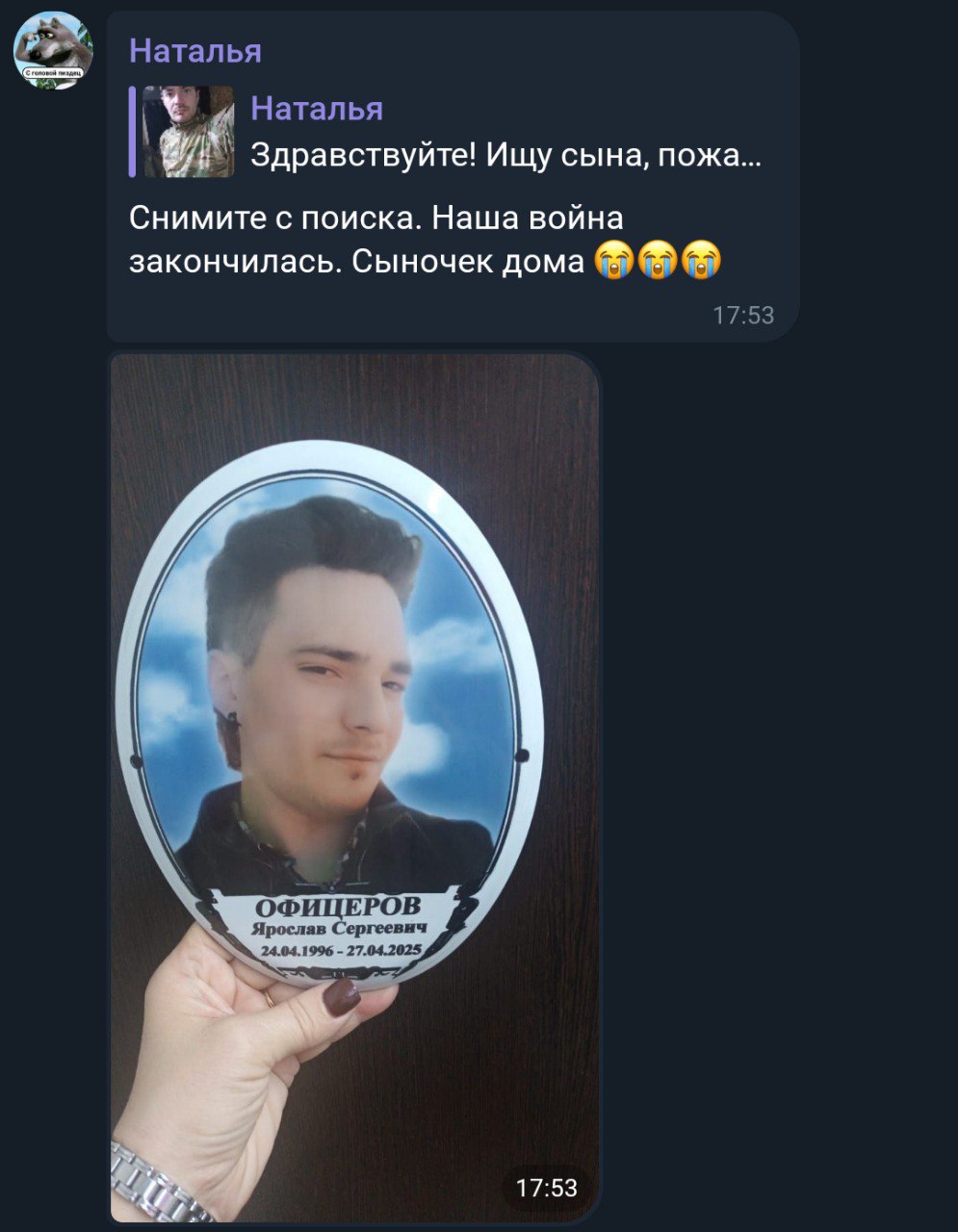 Дата сообщения о гибели: