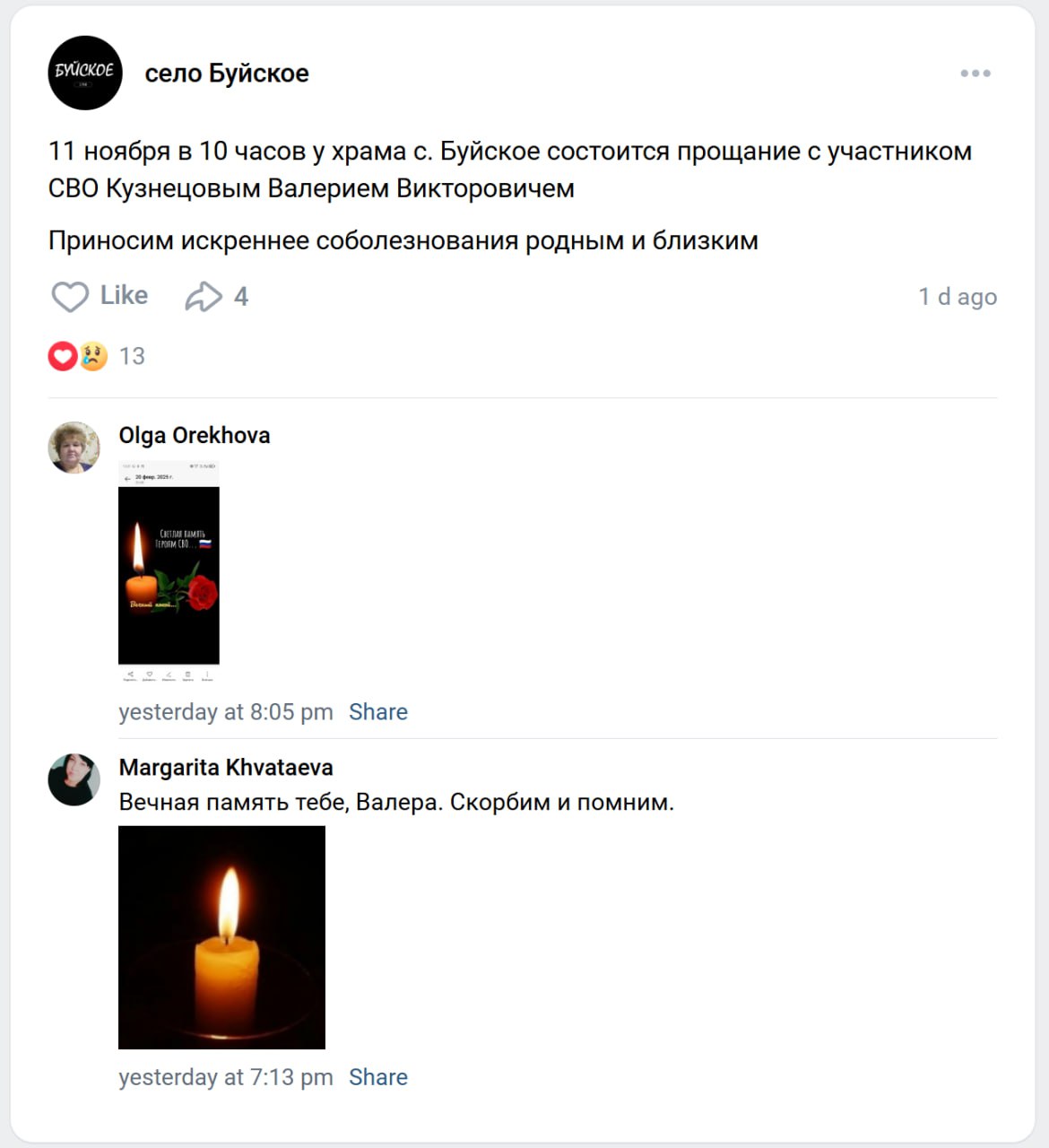 Дата сообщения о гибели: