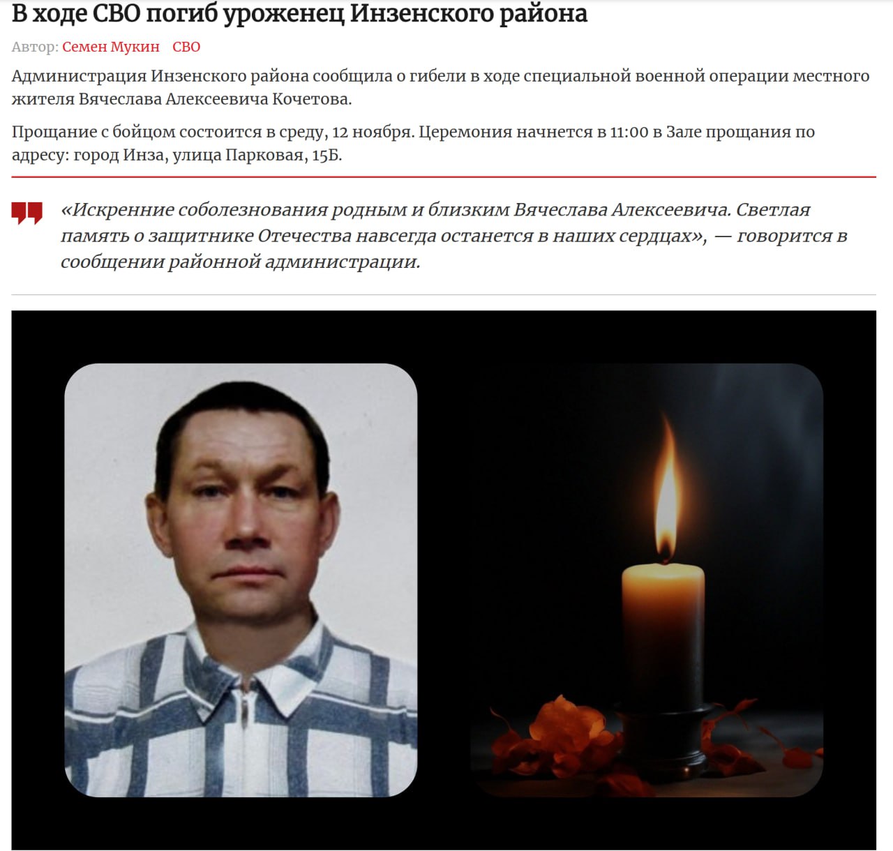 Дата сообщения о гибели: