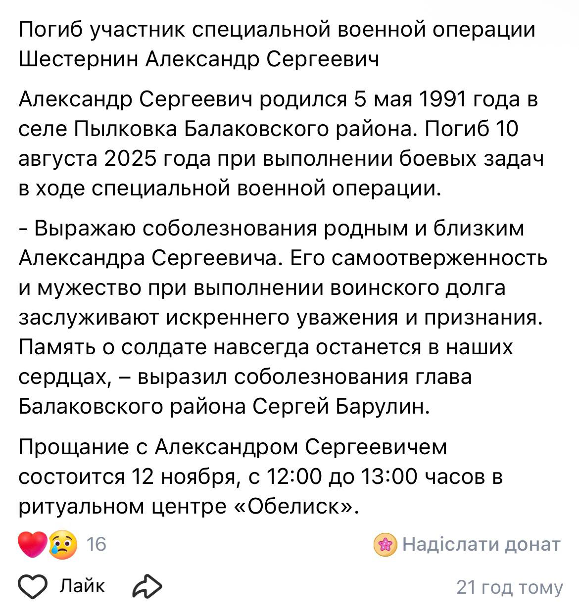 Дата сообщения о гибели: