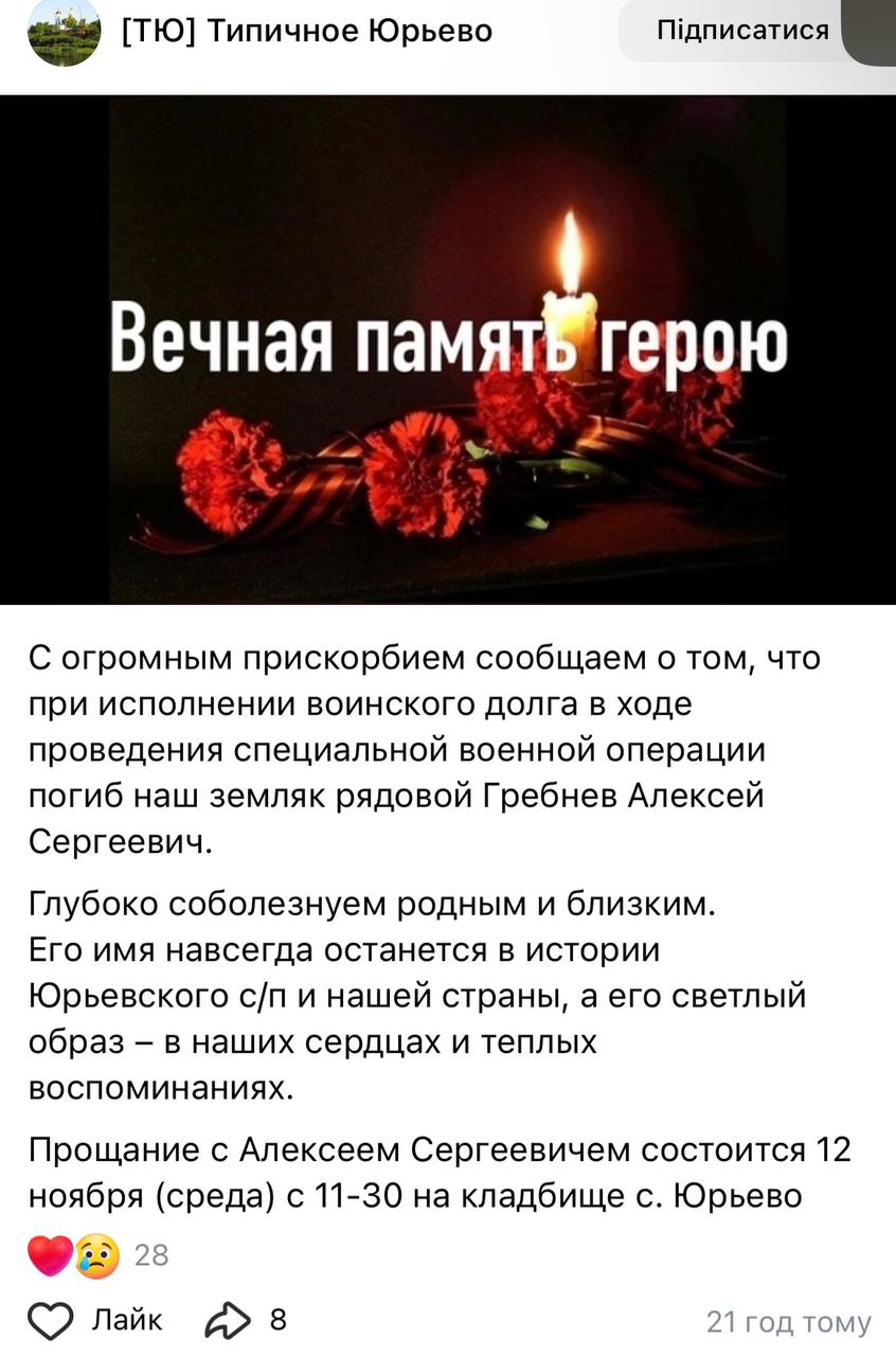 Дата сообщения о гибели: