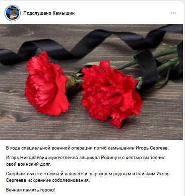 Дата сообщения о гибели: