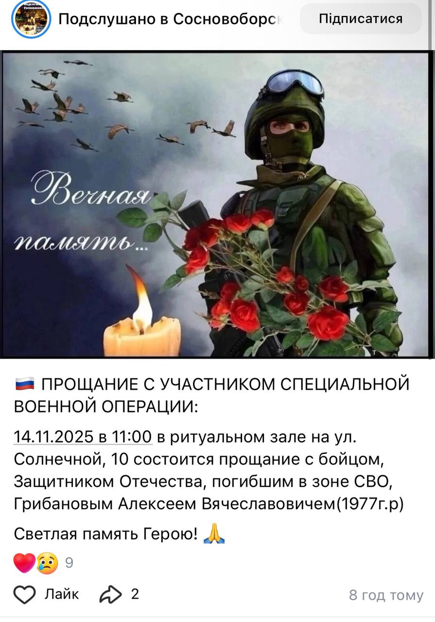 Дата сообщения о гибели: