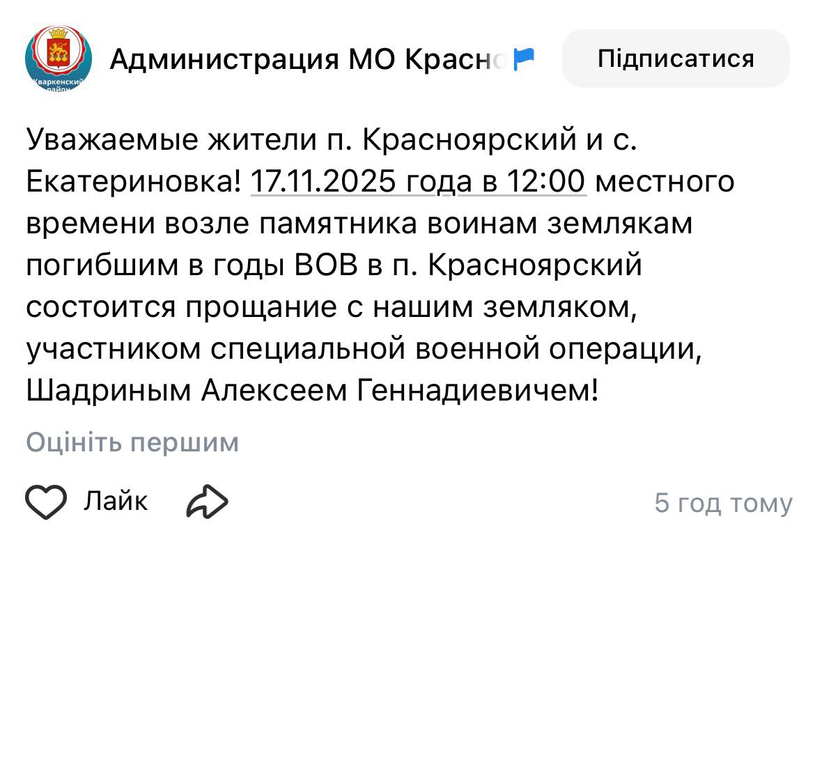 Дата сообщения о гибели: