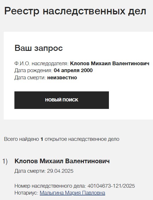 Дата сообщения о гибели: