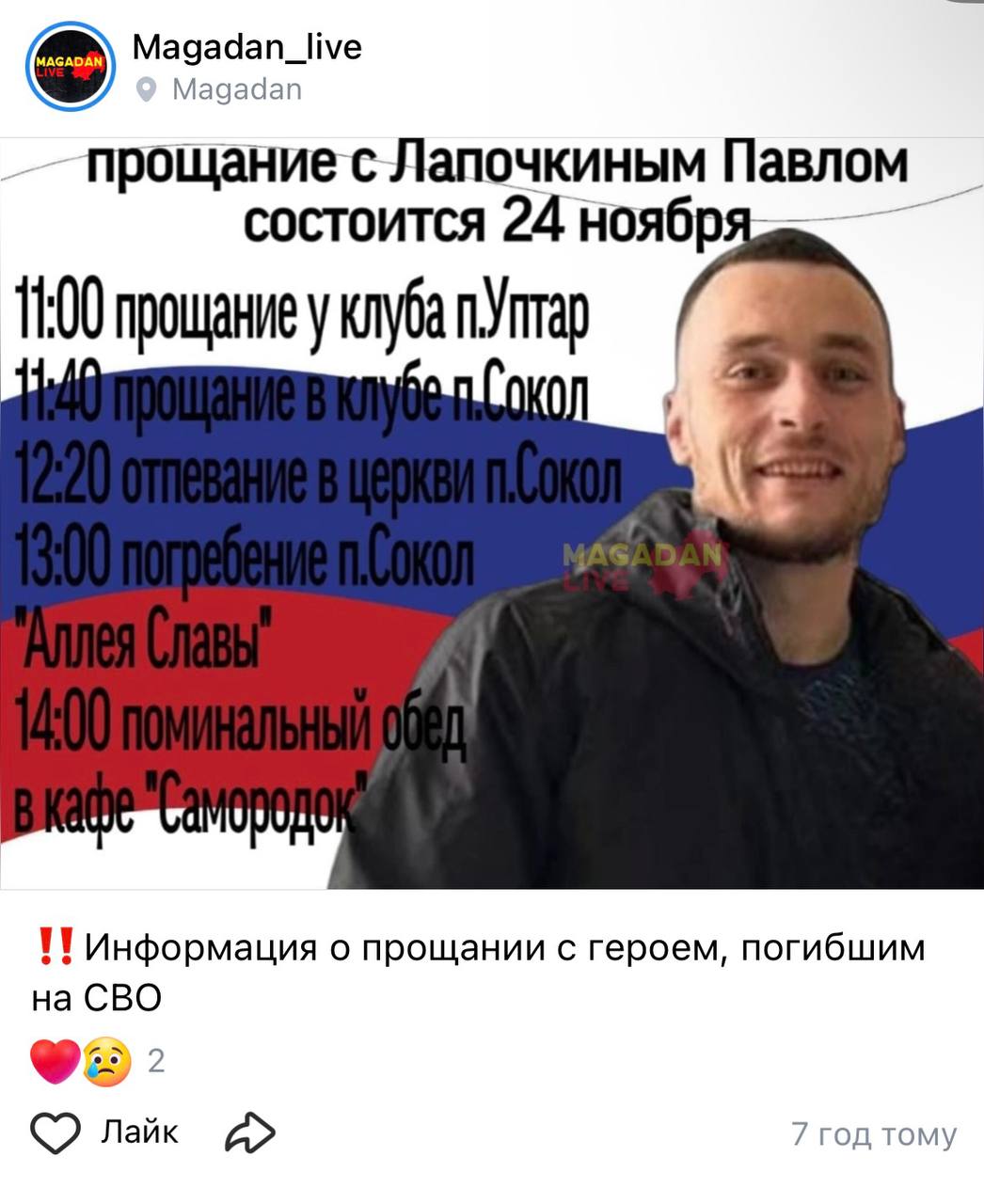 Статус: Подробные данные по данному погибшему получены и обрабатываются.