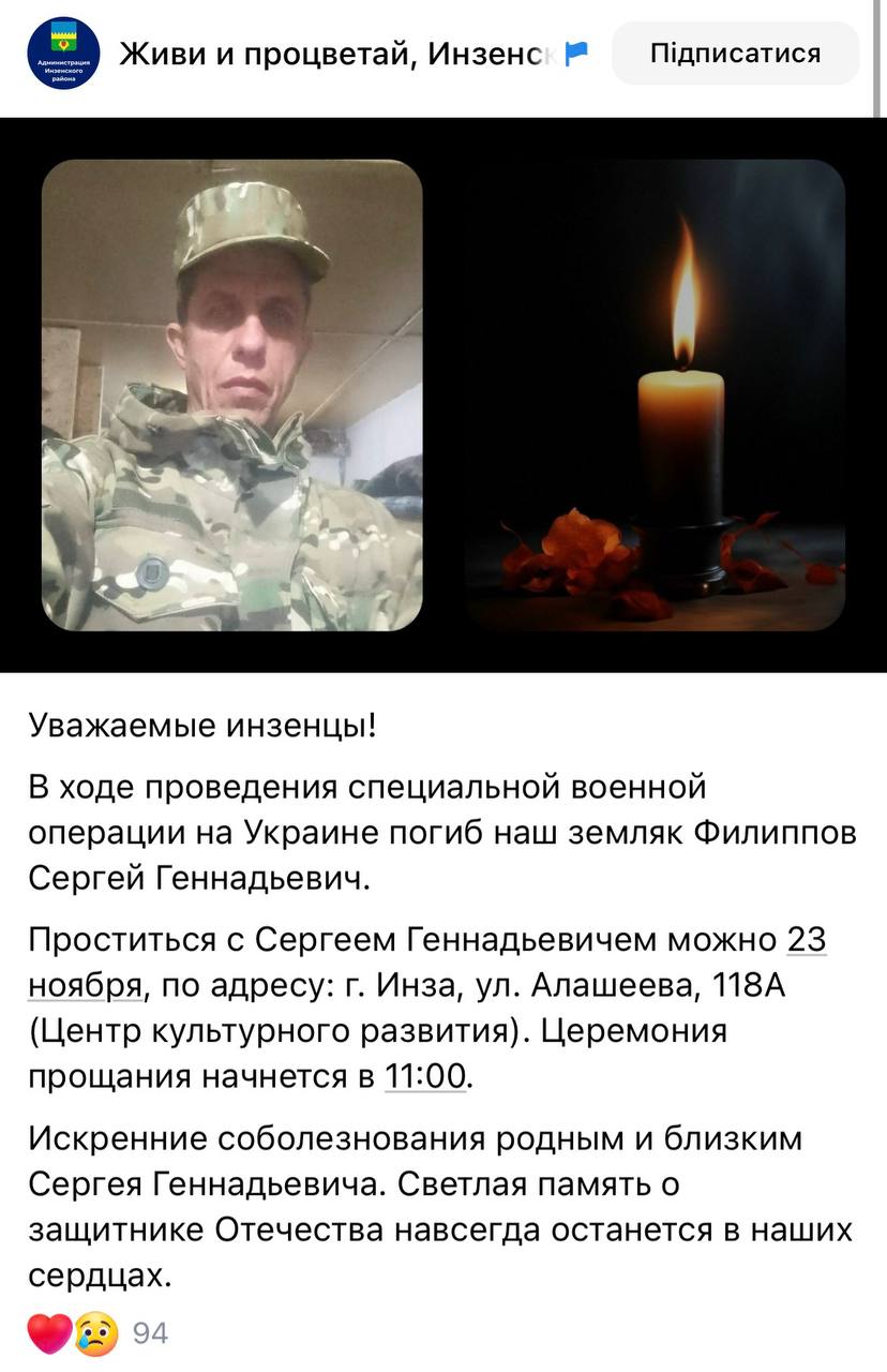 Дата сообщения о гибели: