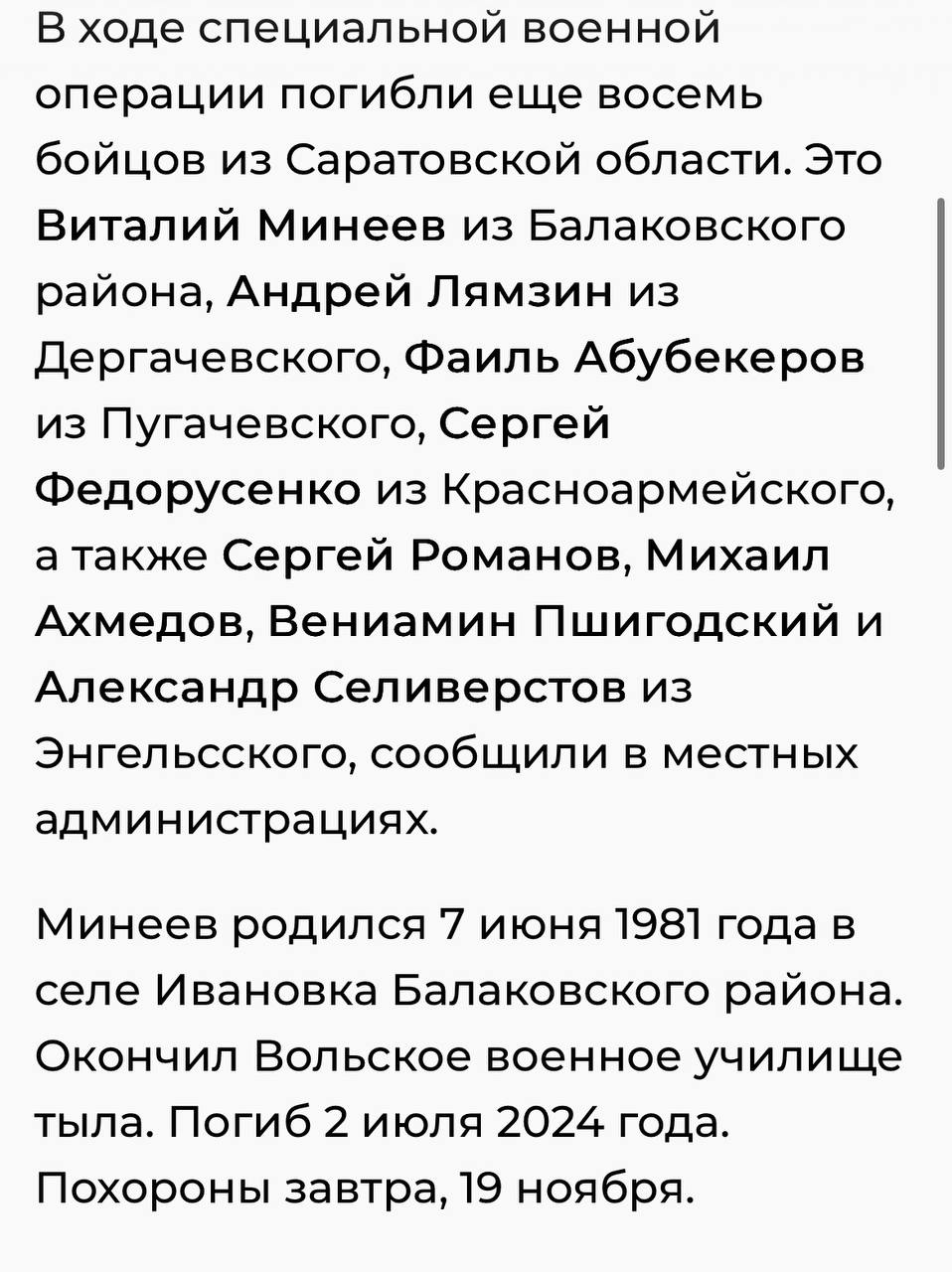 Дата сообщения о гибели: 23.11.2025