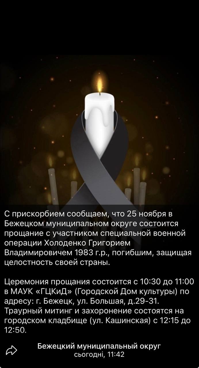 Дата сообщения о гибели:
