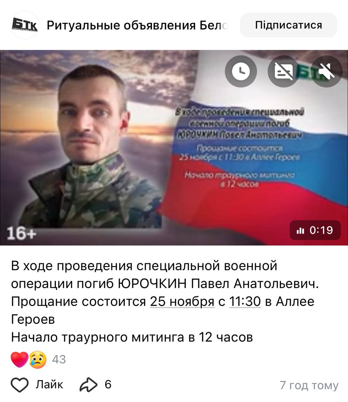 Дата сообщения о гибели: