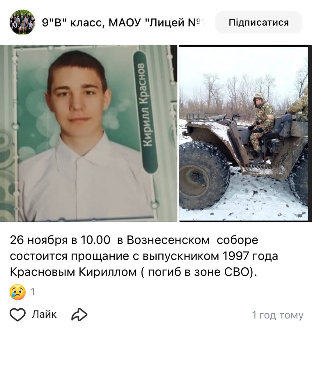 Дата сообщения о гибели: 25.11.2025