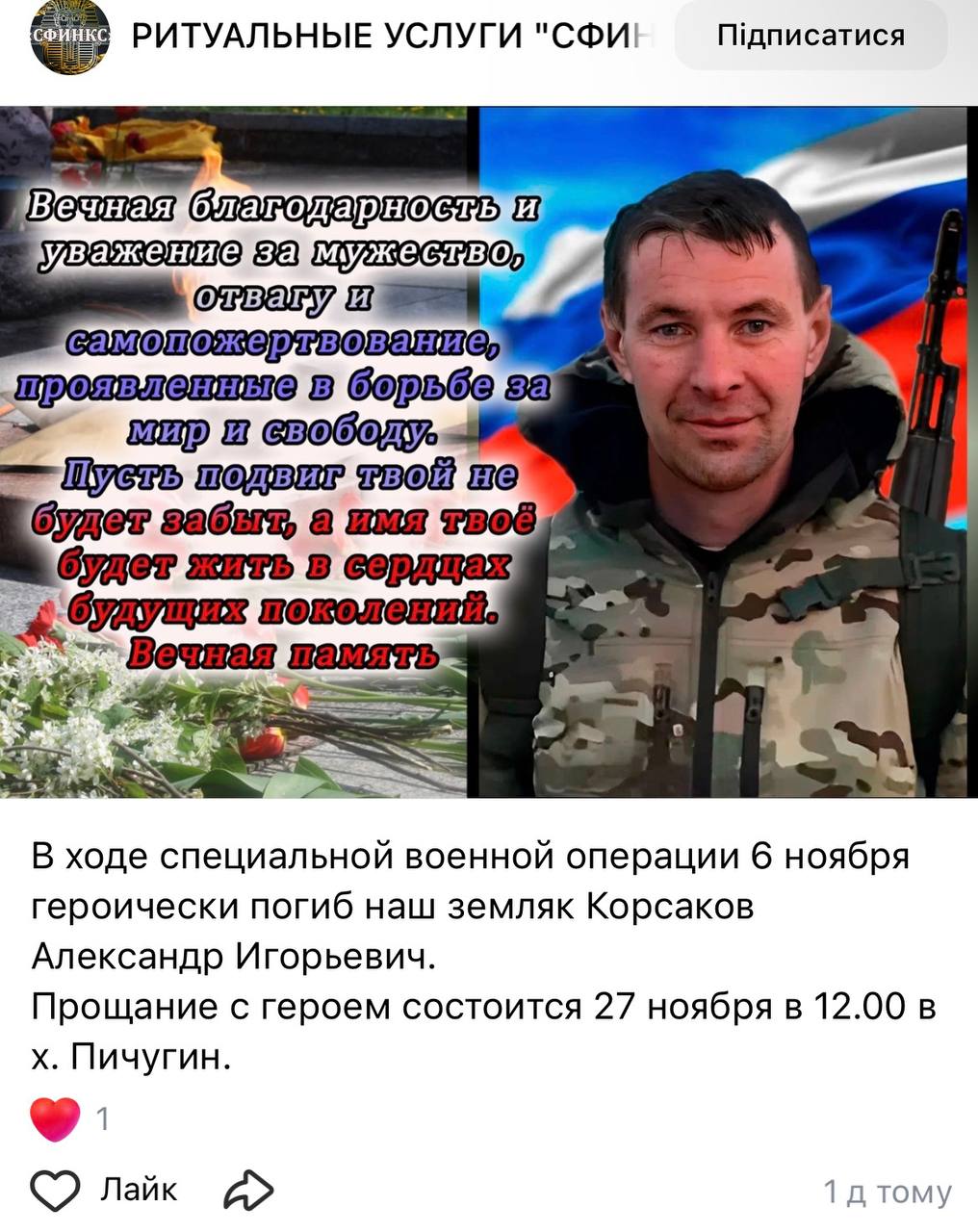Дата сообщения о гибели: