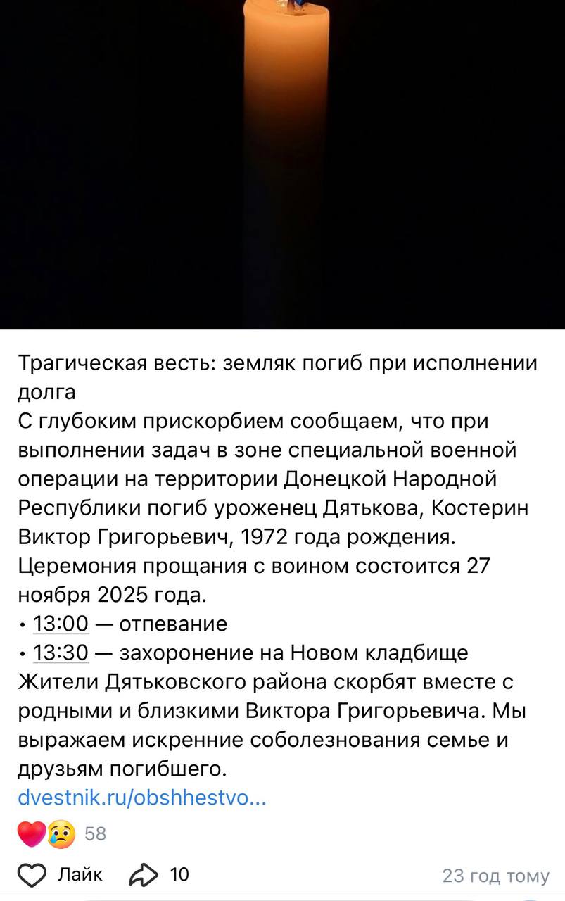 Дата сообщения о гибели: