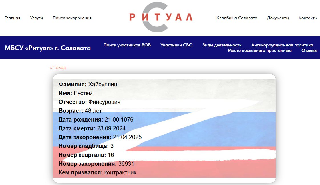 Подробные данные по данному погибшему