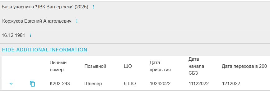 Подробные данные по данному погибшему
