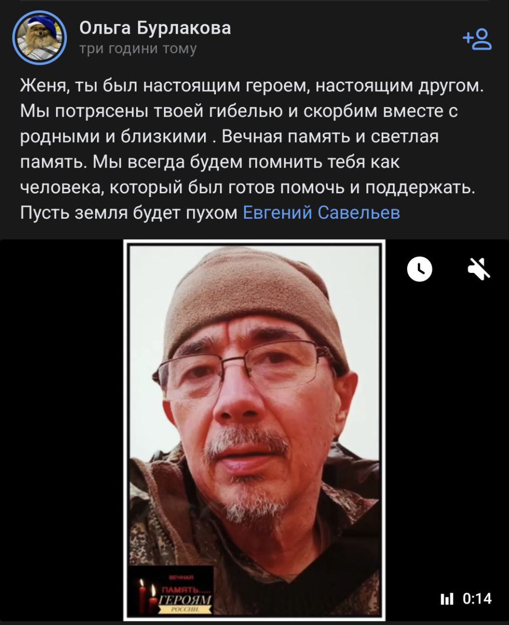 Скриншот сообщения о гибели